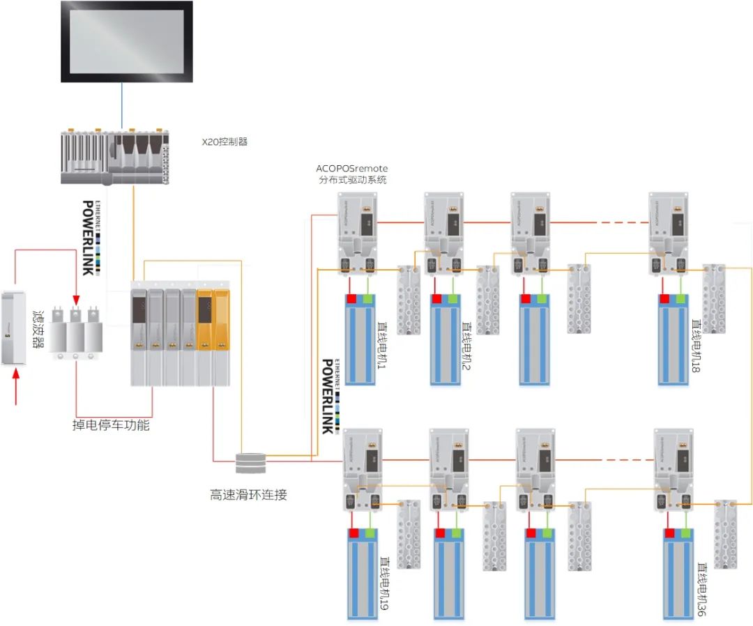 在更為高速,例如達到72,000瓶乃至108,000以上的機器中,還可以采用響應速度更高的直線電機來進行伺服拉伸動作,而貝加萊的ACOPOSremote模塊可以直接驅動第三方的直線電機,來獲得更高性能的機器控制。