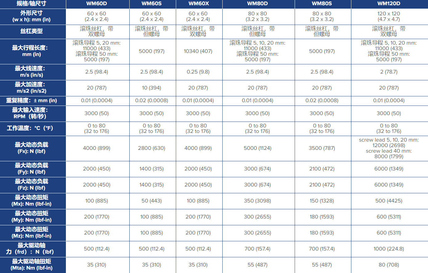 WM系列為需要剛度、剛性和精度的應用提供絲杠驅動滾珠導向的運動。MLSM采用寬軸承結構,具有高力矩負載。WV單元類似于WM單元,但需搭配外部軸承導軌使用。WMZ單元是一種負載能力更高的WM軸承系統,但采用皮帶驅動,速度更高。